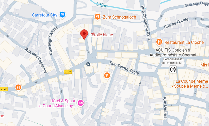 Situé en plein centre d’Obernai, derrière la Marie et à côté d’un Carousel, vous pouvez venir ici récuperer votre commande ou déguster sur place nos spécialités.